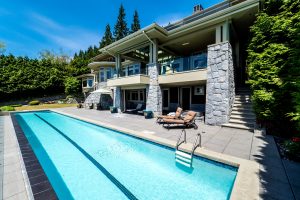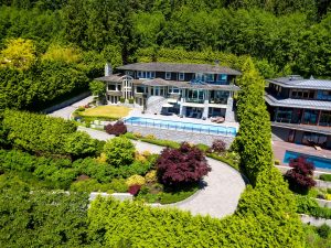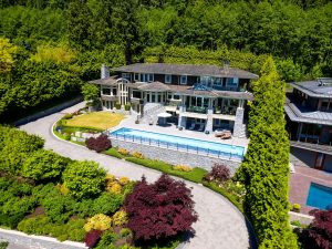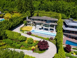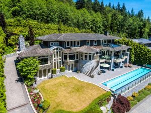 Situated on a bluff, sits 29,000 square ft city and ocean view lot located on British Properties most prestigious street. This custom build 7400 sq ft residence was a collaboration between architect Gordon Hlynsky and builder Braden Homes. The home offers 4 large bedrooms, 7 bathrooms, theater room, game room with wet bar and wine cellar, the plan is perfect for large family who enjoy to entertain large groups. There is extensive mill work and built-in through out the home, as well as solid oak floors. Radiant in floor heat, air conditioning, covered south facing decks with fire place and heaters, pool and hot tub with city and ocean views. Plenty of usable out door space and meticulous maintained gardens.