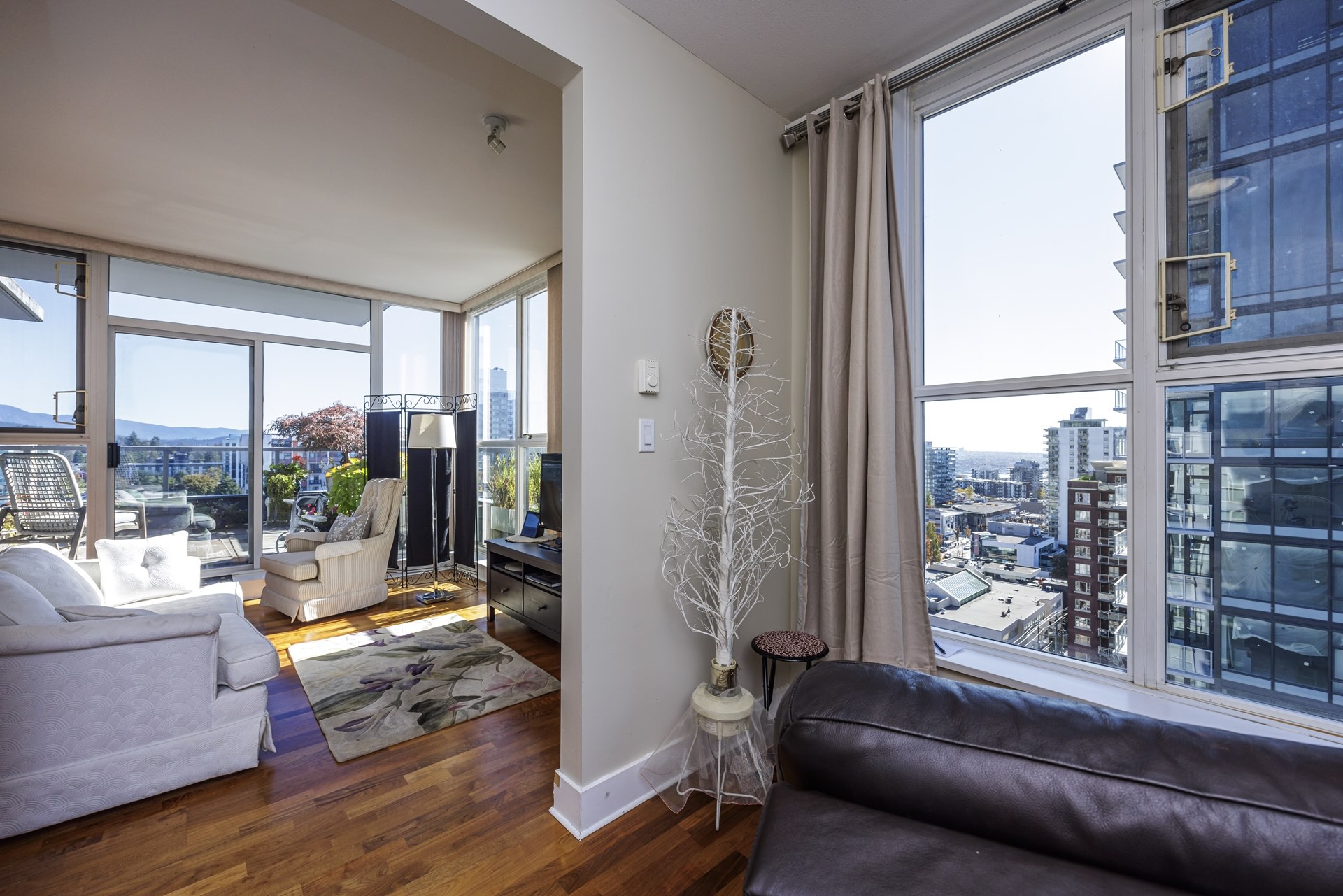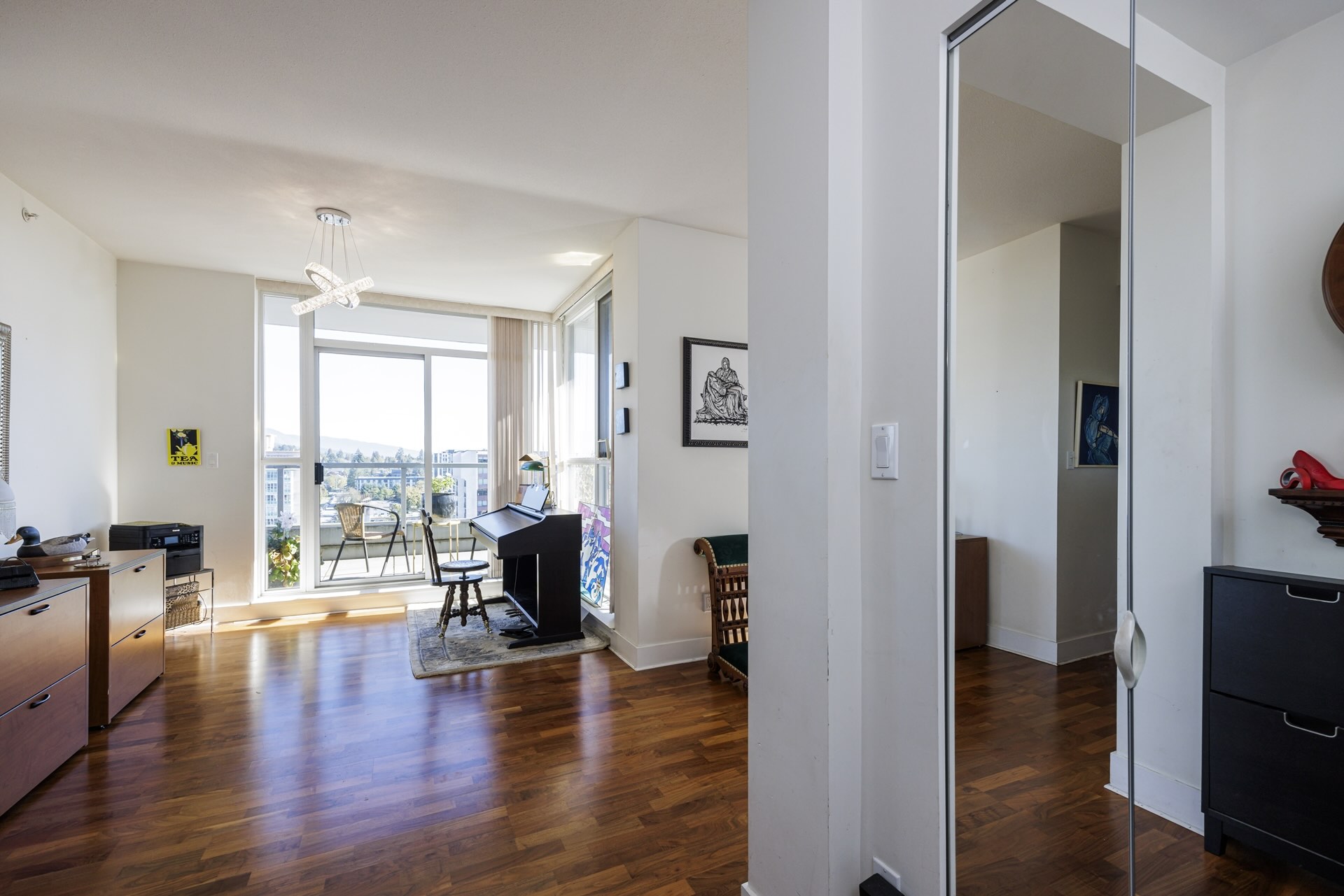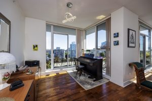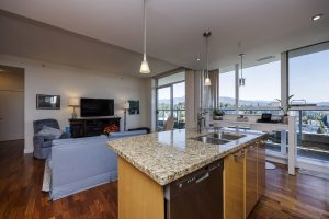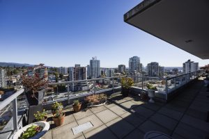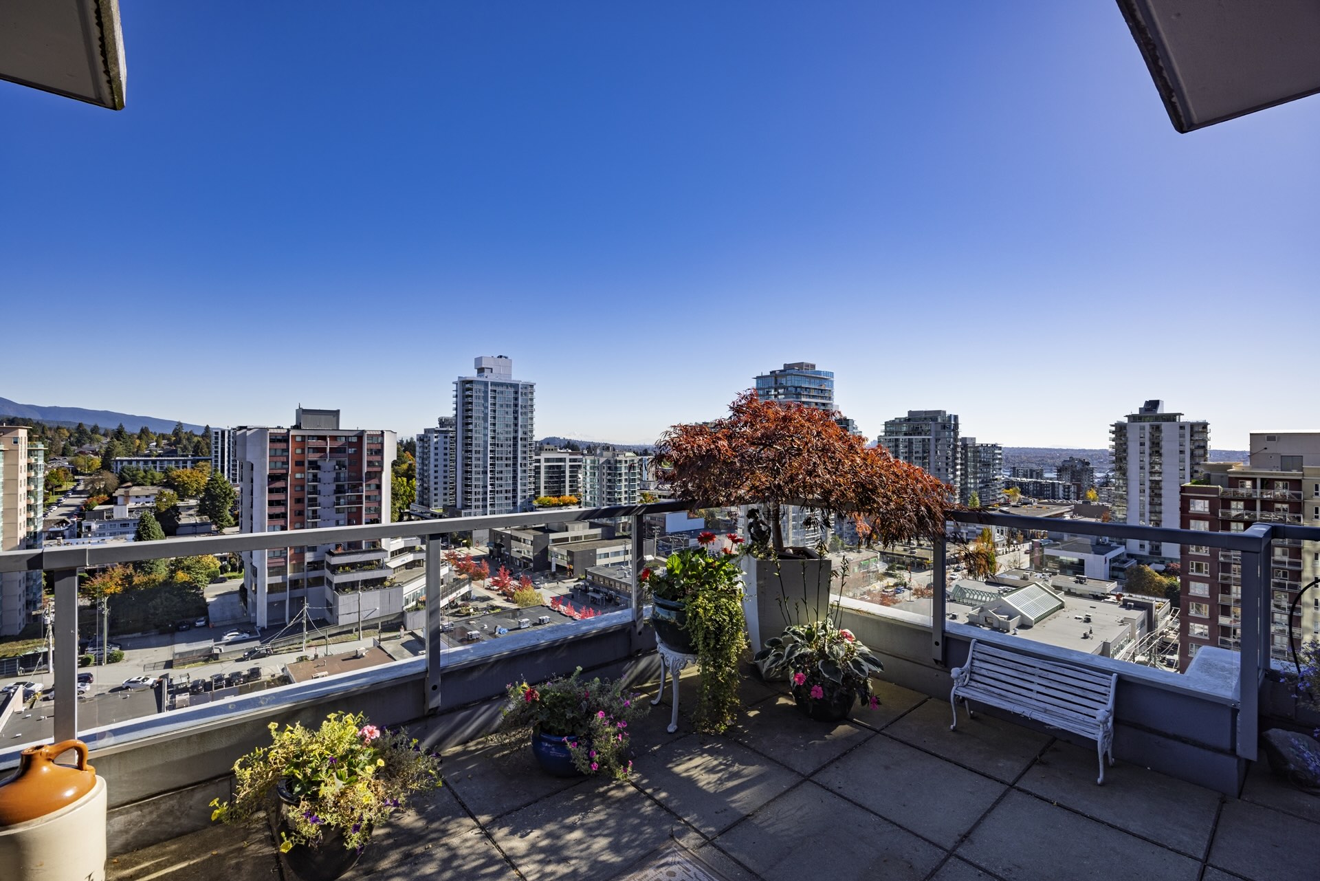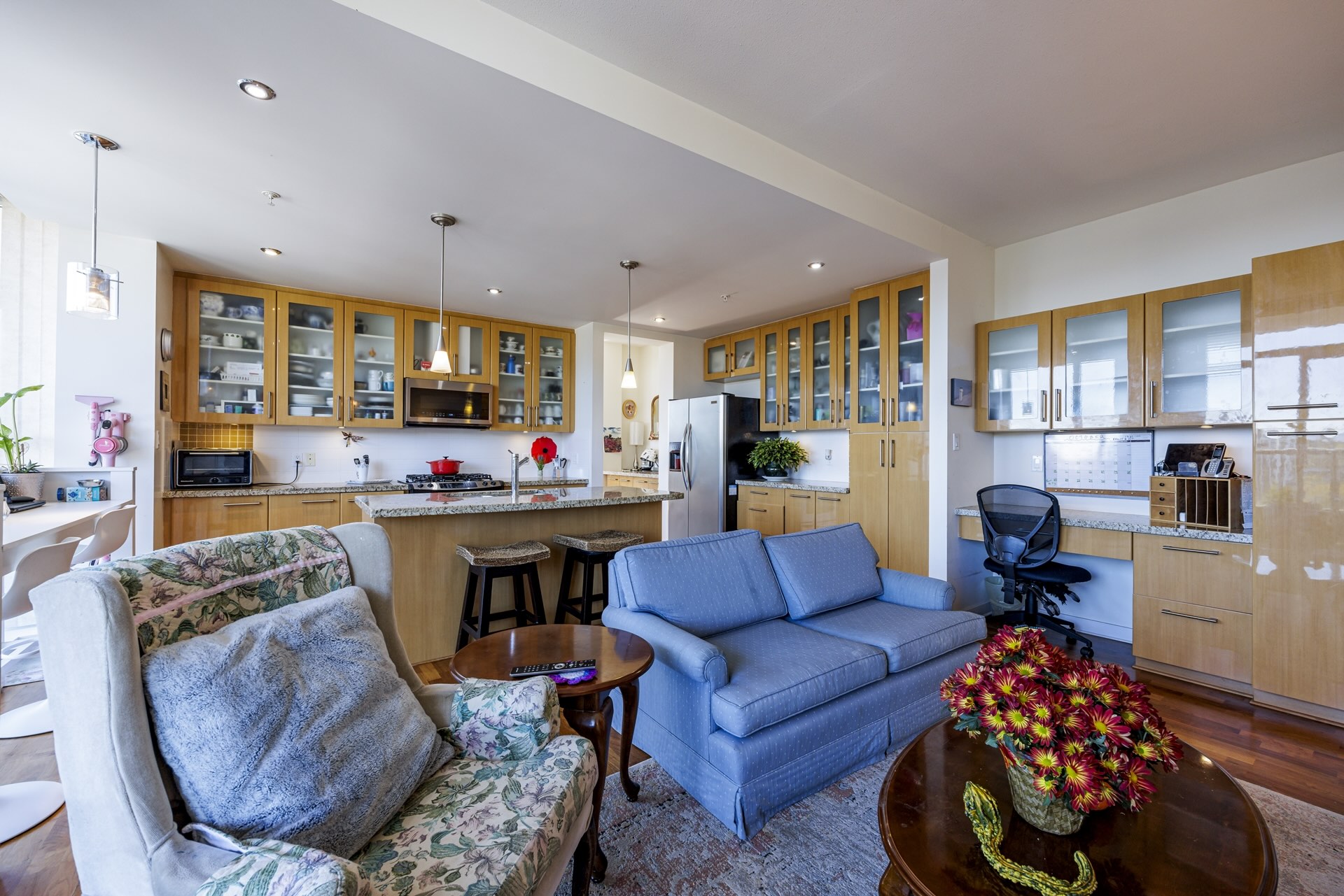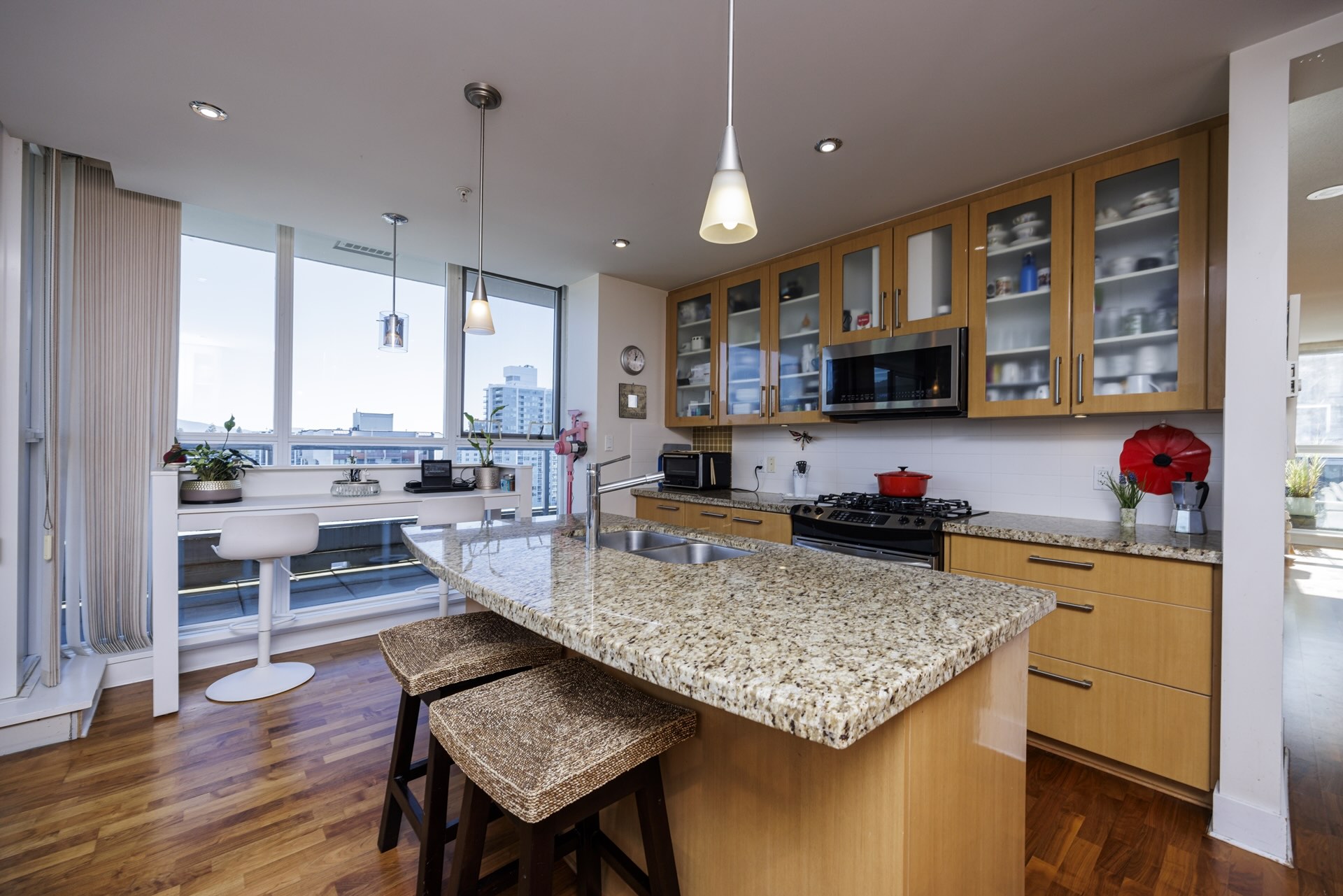 Centrally located penthouse with amazing VIEWS, is a fabulous 1,744sqft, 2 bedroom and den, 3 bathroom rare offering! A corner suite whose innovative design includes wide plank hardwood floors, cozy gas fireplace and floor to ceiling Low E, Smart glass thermal windows. Enjoy an expansive 700sqft roof top patio perfect for summer b-b-q or relaxation while taking in awesome SE views. The kitchen features granite counters, textured glass upper cabinets, ceramic tile backsplash, stainless appliances and an eating bar/island open to the family room for easy entertaining. A huge primary bdrm boasts spa-like ensuite to pamper yourself, walk-in closet, + 2nd bdrm has ensuite bath too! Lovely amenities, superb location and LEED certified! 2 parking & storage included.
