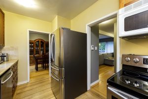 Conveniently situated, this spacious split level home offers three bedrooms and an updated bathroom upstairs, with a bright bachelor suite in the basement. The main floor features a large living room with wood burning fireplace and an adjoining dining room with double doors to the private yard. The kitchen offers stainless appliances and hardwood floors which compliment the whole house. The suite has its own entrance and laundry making it an ideal income helper! Set on a corner lot close to transit, shopping, parks and trails, it is also walking distance to both elementary and secondary schools. A solid family home!