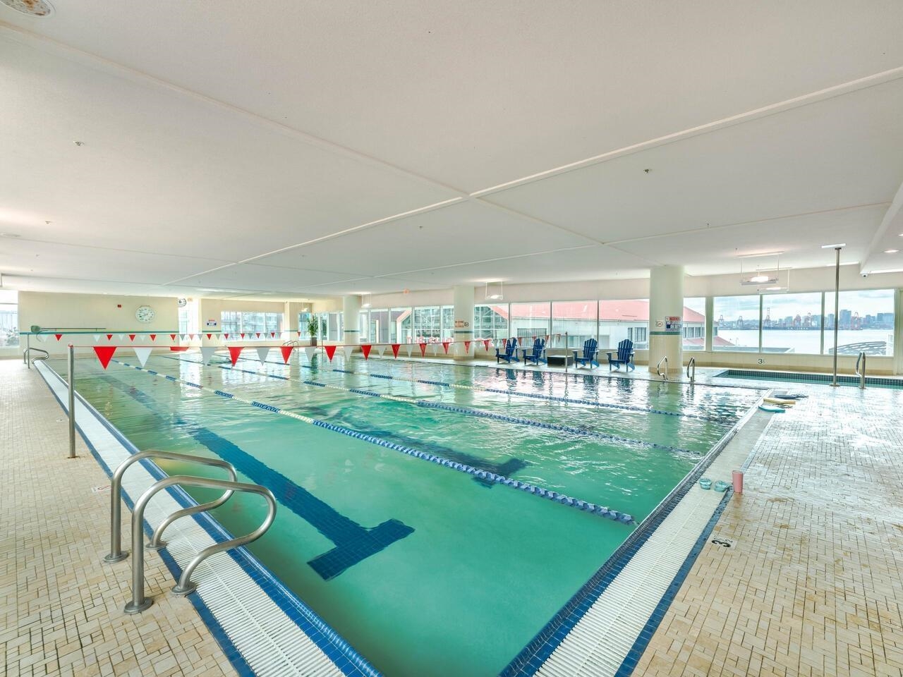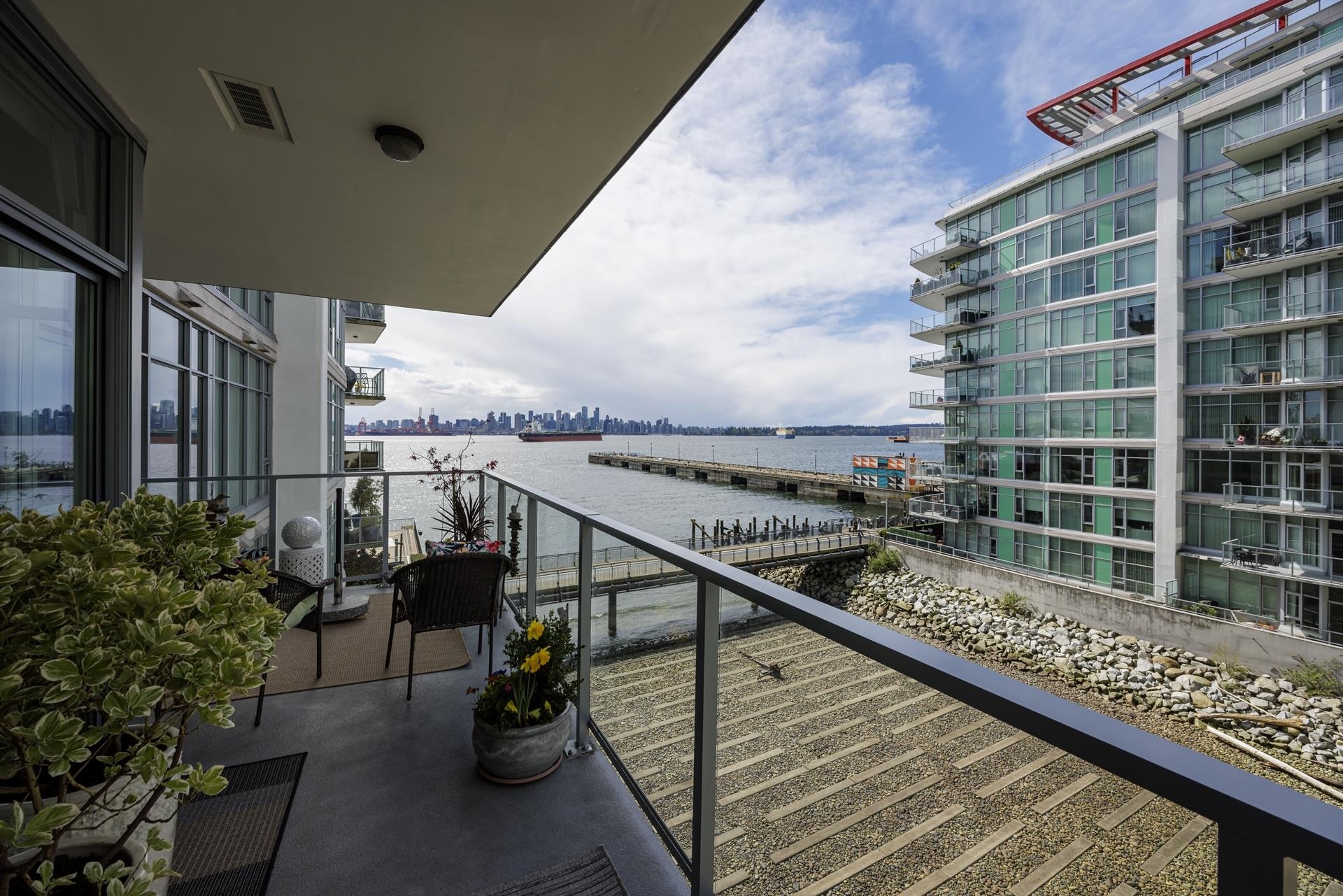PRIDE OF OWNERSHIP is evident in this superb two bedroom and den waterfront home! Meticulously maintained, it offers a flexible open floor plan with separated bedrooms each with full ensuite and walk-in closets. CITY & WATER VIEWS, 9ft ceilings and modern finishing! There's a chef friendly kitchen with stainless appliances and a large balcony off the living room ideal for entertaining and relaxation! Located in Lower Lonsdale's desirable oceanfront community with a private beach, full fitness amenities (including the Pinnacle at The Pier pool) and a great selection of shops and restaurants two minutes from your front door with VIP discounts at the hotel! Easy access to Downtown Vancouver via the Sea Bus. 2 parking, storage, EV charging + bike room and visitor parking! OPEN APR 15 2PM-4PM.