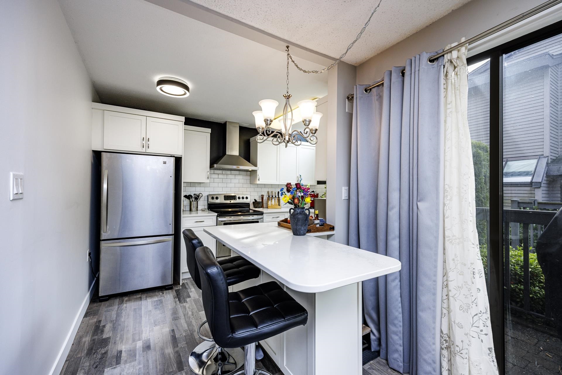 This inviting three level townhome (one of the largest) offers a bright kitchen with Caesarstone counters, stainless appliances, custom peninsula and loads of windows that fill the space with light. Quality laminate floors complement a living room with cozy gas fireplace and private patio access. An updated powder room completes this main floor. Upstairs features two spacious bedrooms and a bathroom plus laundry for convenience. The basement level has a large third bedroom with closet. There is ample storage and a small workshop area, direct access to secured parking, plus this boutique collection of townhomes is pet friendly with a pro-active strata! Located in beautiful Upper Lonsdale it's steps to parks, Queensdale Market, coffee shops and more!