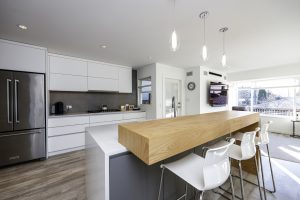 Executive style 2 level half duplex located on a South facing lot on one of Central Lonsdale’s finest streets! 3 bedroom, 3 bathroom home was completely remodeled right down to the studs 5 years ago. A modern design with a light and airy floor plan makes it ideal for entertaining. There is a large walk-out deck off the family room ideal for outdoor/indoor relaxation. The kitchen features high-end stainless steel appliances, quartz counters and a butcher block breakfast/cocktail bar. The primary bedroom upstairs boasts a beautiful ensuite, large closet and private patio with Southern views to downtown. There are 2 additional bedrooms and loads of built-ins for storage, plus a 4 foot crawl space below the main floor perfect for extras. Fully fenced backyard and a large two car garage!