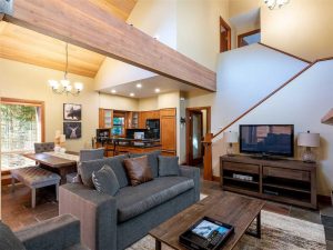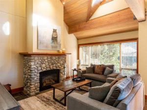 PHASE 1 – NIGHTLY RENTALS ALLOWED. You can enjoy breath-taking Whistler and Blackcomb Mountain views from this rarely available bright end unit in one of Whistler's most desired developments. Spacious, open floorplan with three bedrooms and three bathrooms on just two levels with exposed beams, stainless steel appliances and heated flooring. Accented by stone and wood the main living area opens to a private patio with sunken hot tub. EV parking and just a short walk to all the restaurants, shops and activities of Whistler Village.